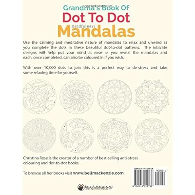 Grandma’s Book Of Dot To Dot Mindfulness Mandalas Beautiful Anti-Stress Patterns To Complete & ColourUse the calming and meditative nature of mandalas to relax and unwind as you complete the dots in these beautiful dot-to-dot patterns. The intricate designs will help put your mind at ease as you reveal the mandalas and each, once completed, can also be coloured in if you wish.With over 10,000 dots to join this is a perfect way to de-stress and take some relaxing time for yourself.Christina Rose is the creator of a number of best-selling anti-stress colouring and dot-to-dot books for all ages.Visit her Amazon author page for more info.You may also enjoy:Anti-Stress Dot To Dot: Relaxing & Inspirational Adult Dot To Dot Colouring Book Cute Cats Dot To Dot: Adorable Anti-Stress Images and Scenes to Complete and Colour