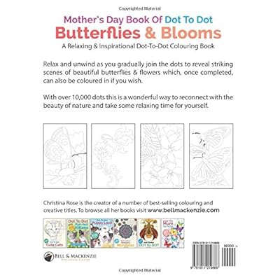 Mother’s Day Book Of Dot To Dot Butterflies & Blooms A Relaxing & Inspirational Dot-To-Dot Colouring BookRelax and unwind as you gradually join the dots to reveal striking scenes of beautiful butterflies & flowers which, once completed, can also be coloured in if you wish.With over 10,000 dots this is a wonderful way to reconnect with the beauty of nature and take some relaxing time for yourself.You may also enjoy:Dot to Dot Love You Mum Dot To Dot Love You Grandma Dot To Dot Love You FriendJust search 'Christina Rose' on Amazon.